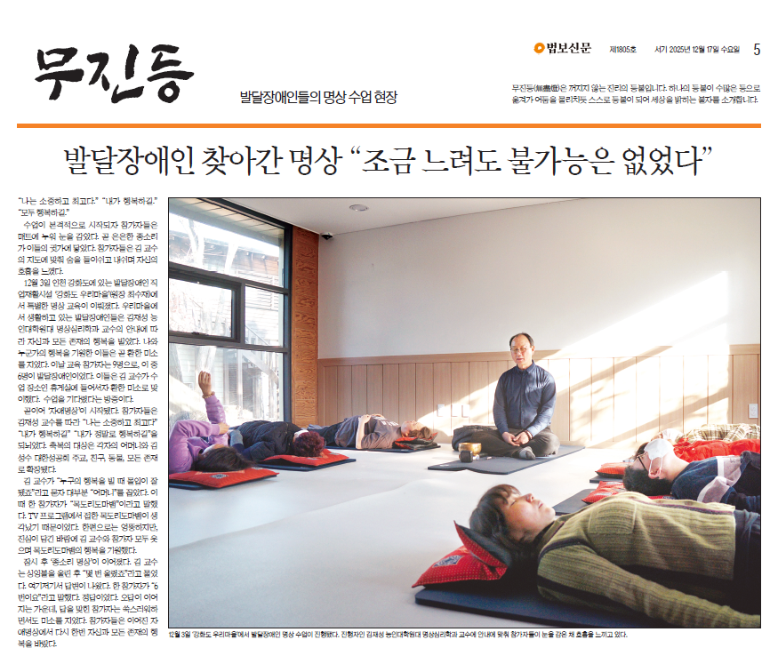 발달장애인들의 명상 수업 현장 < 무진등 < 연재 < 기사본문 - 법보신문